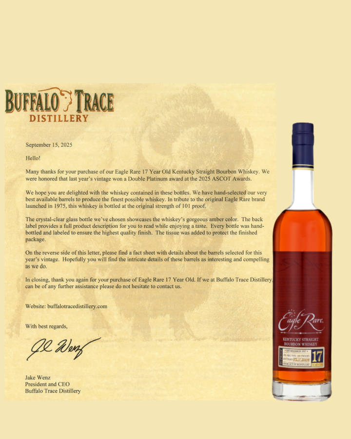 Eagle Rare 17 Year Old Bourbon Whiskey 2025 750ml Discover the pinnacle of aging from Buffalo Trace Distillery with this year’s coveted 17-year expression — matured well beyond its stated age...